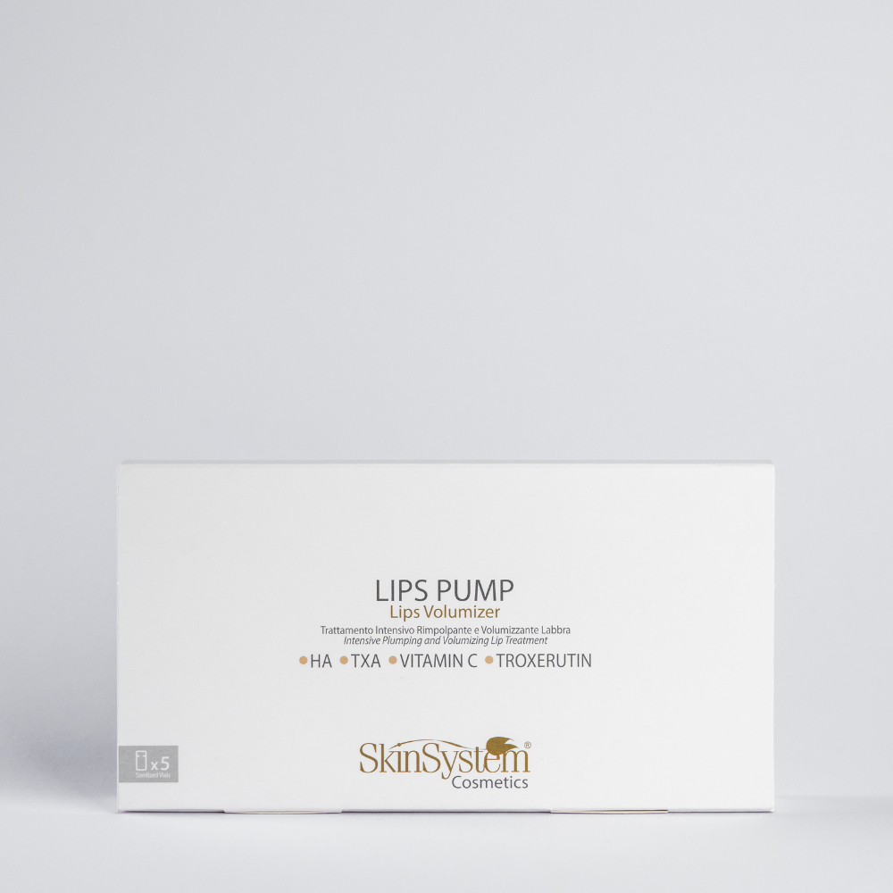 Lips Pump es un tratamiento en ampollas de 5 ml cada una, que pueden vehicularse a través del dispositivo HydraPen H3.Principios activos